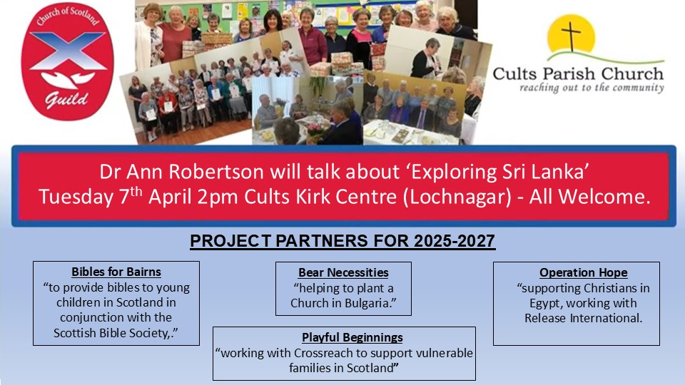 Whoever you are, whatever creed or colour, cultural background or sexual orientation is yours, we want you to feel welcome in Cults Kirk. Whatever exclusive is, we’re not that! We’re a busy church, always lots of things going on – cafes and ceilidhs and coffee mornings; fair-trade and eco-issues; Bible studies and concerts; crèches and playgroups and Messy Church; commitments to causes local and international; worship which tries to be honest, which engages our minds as well as our hearts; worship which marries mysticism and relevance.